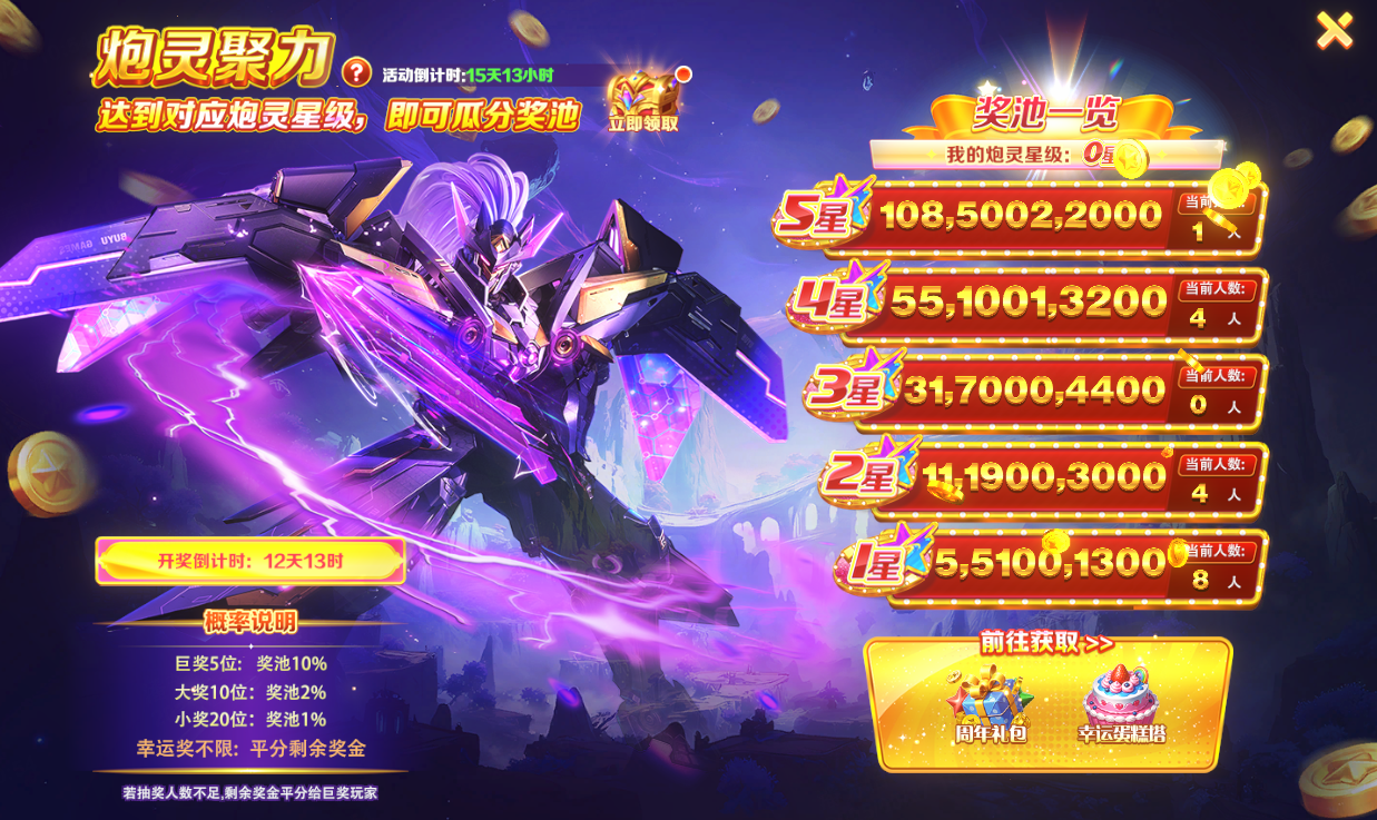 炮灵升星即可瓜分百亿金币奖池