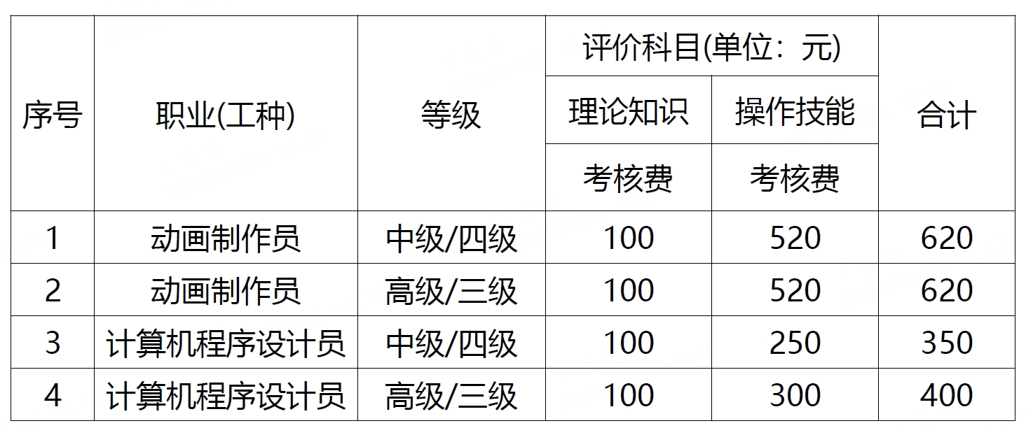 2、2026年职业技能认定收费标准: